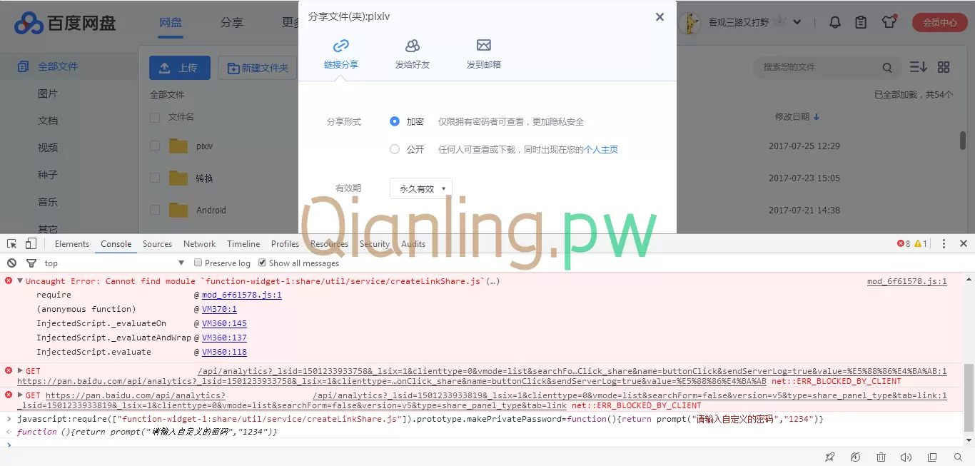 1 | javascript:require(["function-widget-1:share/util/service/createLinkShare.js"]).prototype.makePrivatePassword=function(){return prompt("请输入自定义的密码","1234")} |