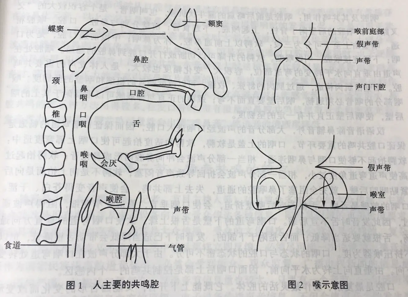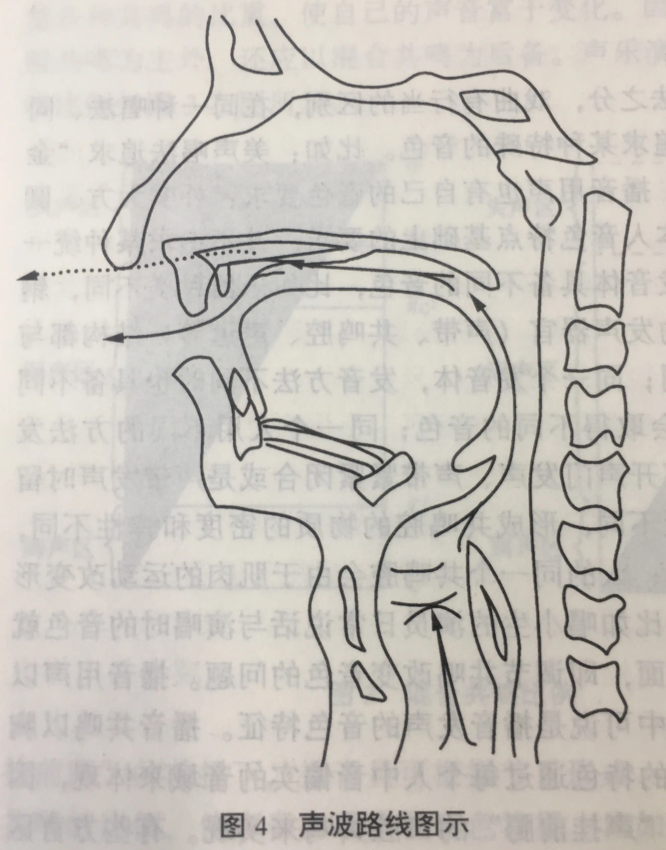 音质是声音四要素中最复杂的要素。音质与发音体的种类,发音方法及共鸣腔形态、大小有关。语音中的多数辅音是由不规则气流振动形成的噪音构成,而元音则是规则振动的乐音,两者形成不同的音质。而这两类不同的声音中,又由于发音部位和发音方法不同,有不同音质的许多音。在元音的发音中,共鸣监的形态、大小和组合特点对元音音质有重要影响。每个共鸣腔都有自身的振动频率,发音时由发音动作构成的不同共鸣腔组合,产生不同频率特性的声音组合,形成不同的元音。