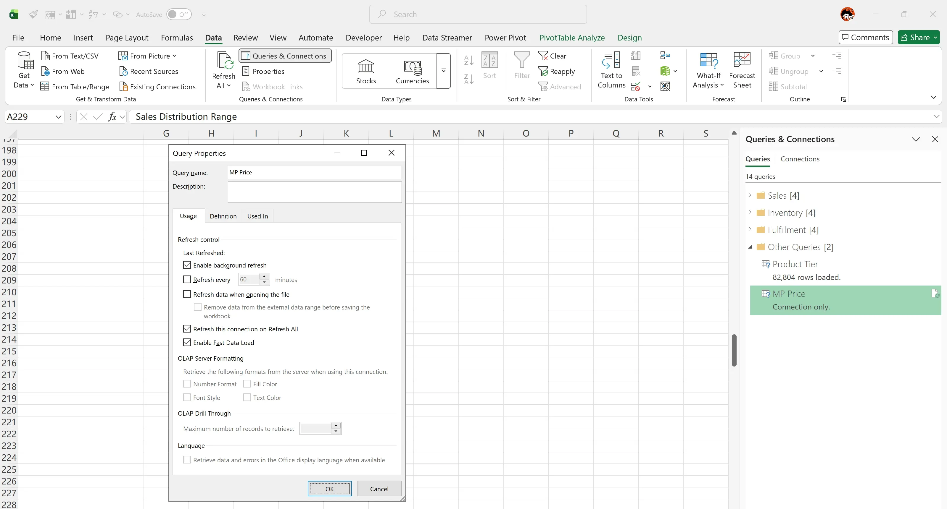 Excel > Data > Queries Connections > Queries > Right-click Menu > Properties…