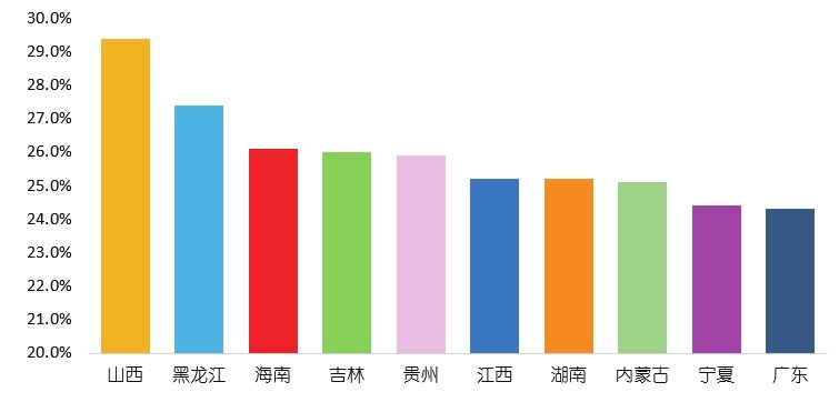 对退款率所在列的数据进行降序排序,然后将退款率大于 20% 的单元格进行橙色底色标识,可以看出宁夏、湖南、江西这三个地区转化率高,退款率也很高。所以排除这三个地方,卖家可以选择福建、广东、甘肃这三个地方加大引流力度。这里之所以没有选择山东,是因为山东地区的流量数据是 95,基数太小,不具有参考性,所以也排除。