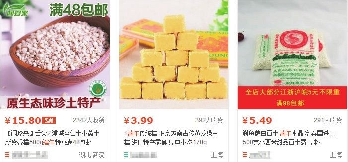 下面再在淘宝中搜索关键词“端午”进行相关商品的查看,可以看到,卖家在端午节设计的营销卖点都是与端午节相关的商品,所以卖家要设计营销方案前,一定要详细了解该节日背后的传统文化,并且将这些民众文化元素加入相关商品的详情页中,这样引入的流量才能有一个高的转化率。
