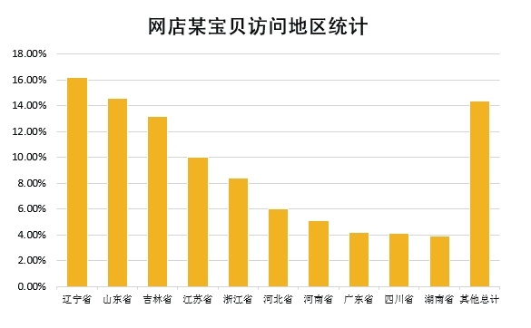 将网店某宝贝的访问地区统计在了一个表格中,似乎只能得出辽宁省访问宝贝比例最高的结论。
