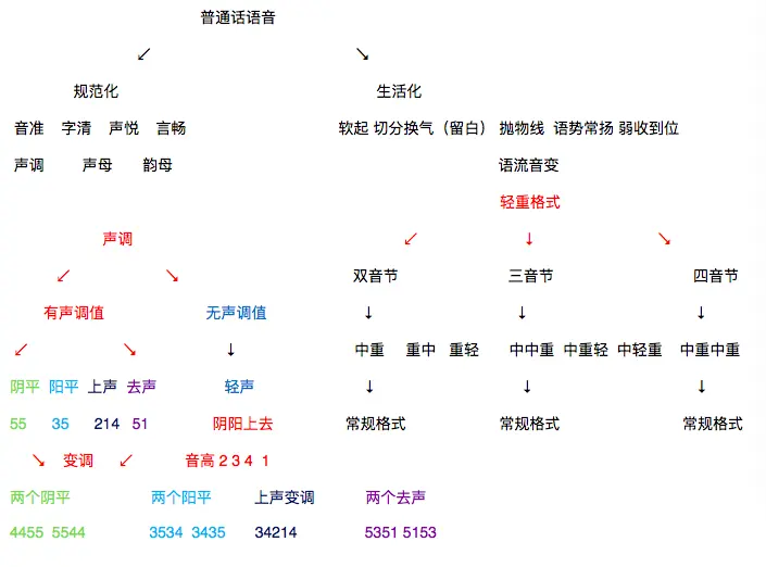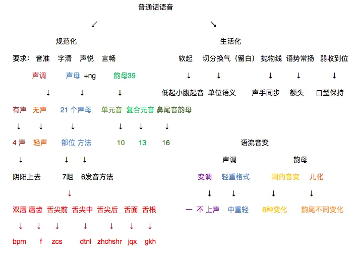 1.音准 语音准确 语法规范 表达准确(调值到位)
