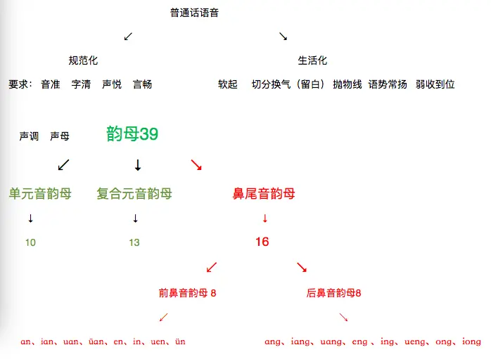 弱收到位:即在结束每一个语义音节发音时,要保持尾音的口型(外收内扩),软腭往上走,声音往上,逍遥,让语音能够体现出从大到小,从强到弱,从实到虚,从有到无的变化。尾音的保持,能够保证音准,体现共鸣,表达语气。闭口太快,是语音失误的一个重要原因。