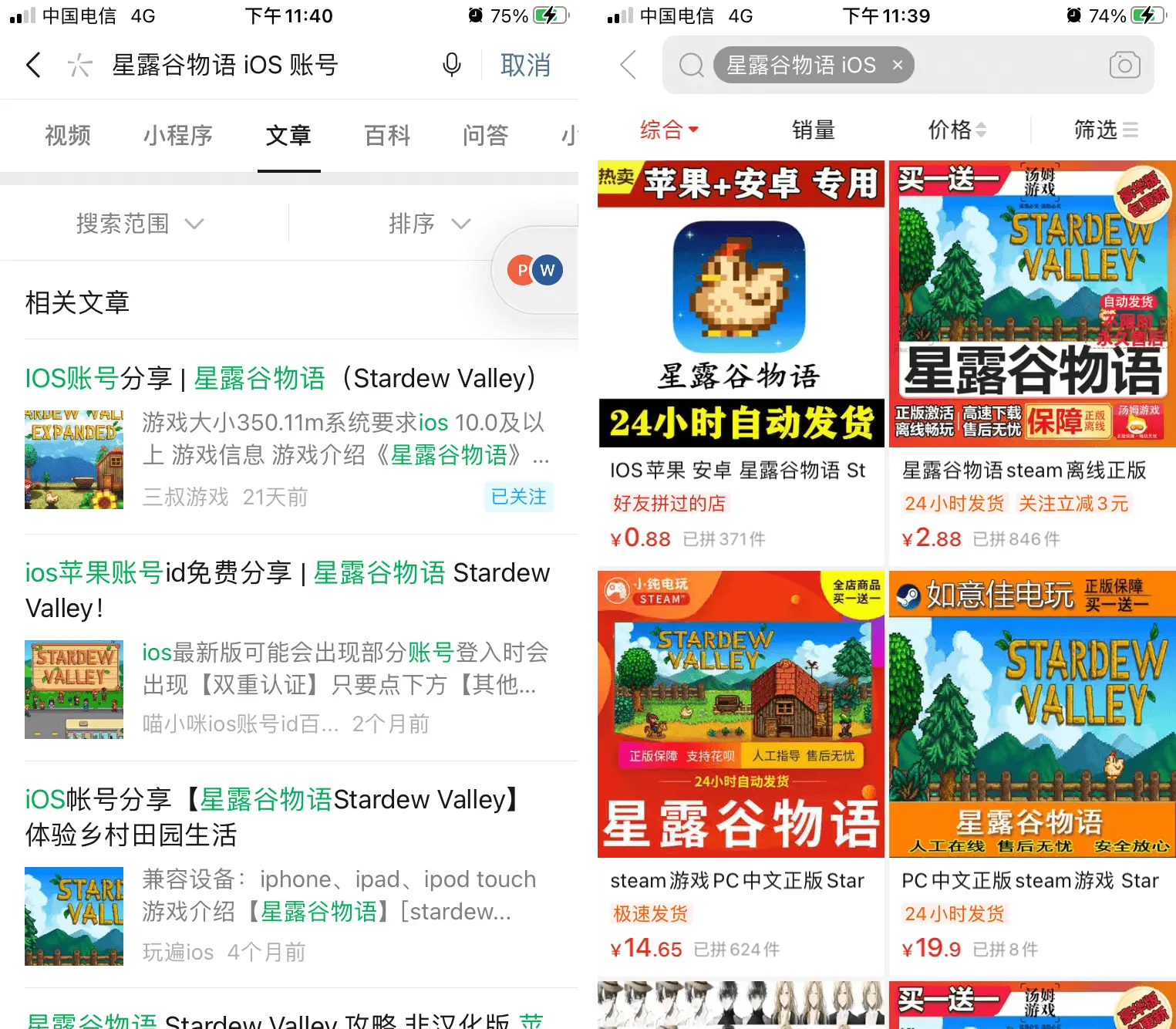 2. 电商平台付费共享账号,平台内搜索:星露谷物语 iOS